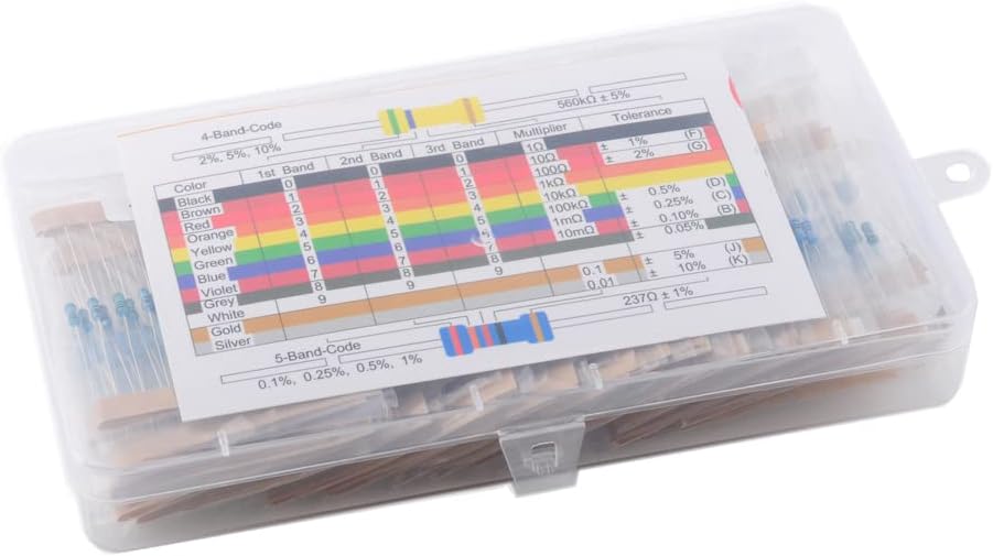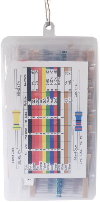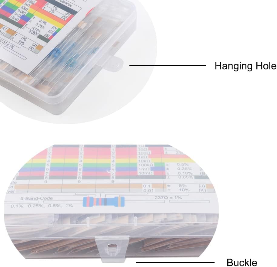 【مريحة ومفيدة】 يتم تعبئة كل مجموعة من المقاومات بملصق يمكنك قراءته دون الحاجة إلى البحث عن رمز اللون. يتم أيضًا تدبيسها معًا وفرزها. يأتي مع رمز اللون المقاوم وصندوق من البلاستيك