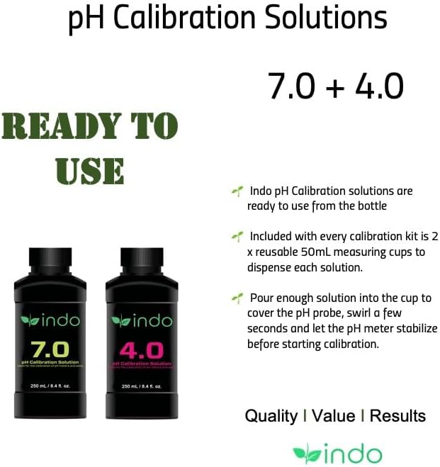 Indo's pH calibration buffer solutions deliver value and provide an accurate pH reference. These pH calibration buffers can be used with any pH instrument: meters, probes, pens, etc. and are versatile for any application. This kit includes a 500 mL bottle of each pH 7 and pH 4 calibration buffer solutions.