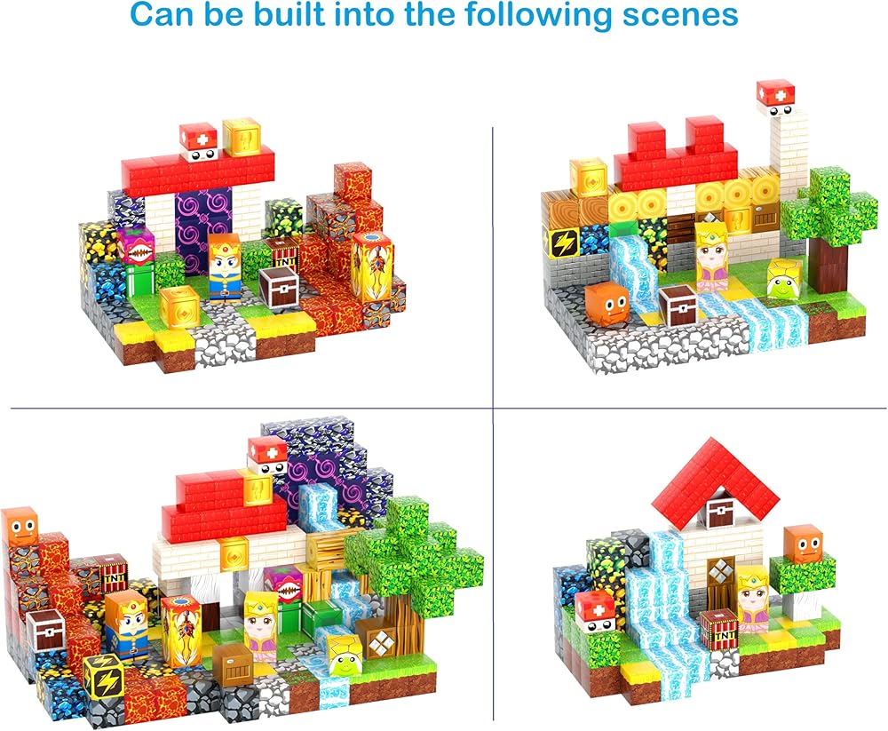 قم ببناء فارس وأميرة على شكل لعبة باستخدام مجموعة الكتل المغناطيسية المكونة من 200 قطعة! (تحتاج مجموعات متعددة لبناء الصورة الرئيسية) هناك فارس وأميرة ووحوش وكنوز. يمكن للأطفال بدء مغامرتهم في العالم.