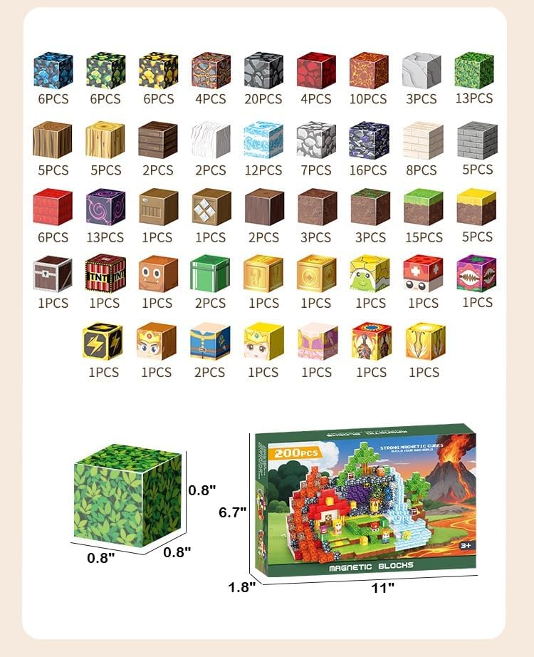 تتضمن العبوة 200 قطعة مكعبات مغناطيسية بحجم 0.8 سم. كتيب فكرة مع أنماط جميلة. مكعبات النشاط المغناطيسية مصنوعة من مادة أكريلونتريل بوتادين ستايرين عالية الجودة ومصنوعة بحواف مستديرة، وهي آمنة للأطفال للعب بها. ألعاب STEM المثالية تساعد الأطفال على تعلم مهارات البناء!