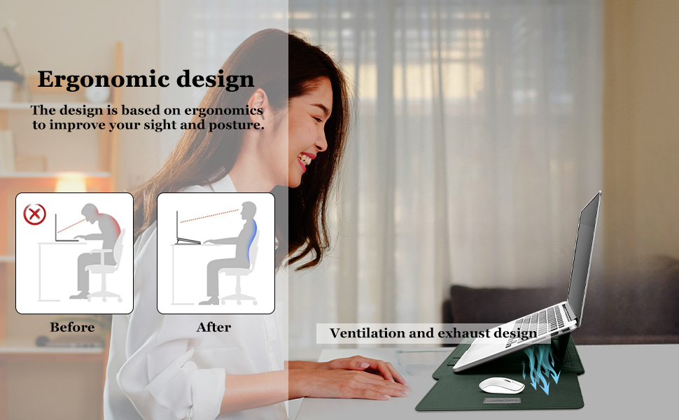 【حامل قابل للتعديل】يعمل الحامل المثلث القابل للطي على تسريع تبديد الحرارة وإطالة عمر الكمبيوتر المحمول الخاص بك. يتيح لك وضع الكمبيوتر المحمول الخاص بك على الحامل تعديل زاوية الرؤية الخاصة بك، وتقليل الضغط على العمود الفقري العنقي، وتخفيف تعب اليد من الكتابة، مما يسمح لك باستخدام الكمبيوتر المحمول الخاص بك في الوضع الأكثر راحة.
