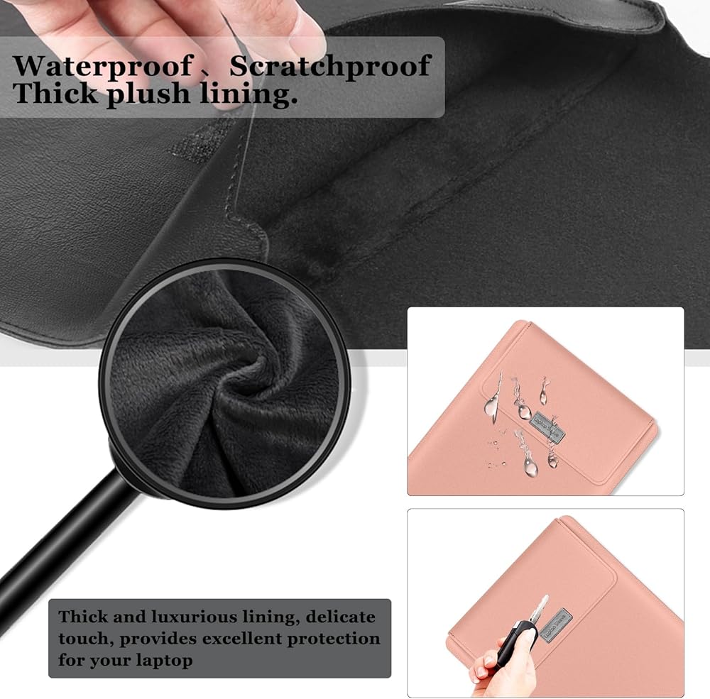 【حماية فائقة】يتميز جراب الكمبيوتر المحمول هذا بجزء خارجي من جلد البولي يوريثان الممتاز المقاوم للماء والذي يحمي الكمبيوتر المحمول الخاص بك بشكل فعال من الخدوش والأضرار الناجمة عن الماء. سطحه الناعم والأملس سهل التنظيف. الجزء الداخلي مبطن بمادة سميكة فخمة لحماية جهازك بشكل فعال من الصدمات والغبار.