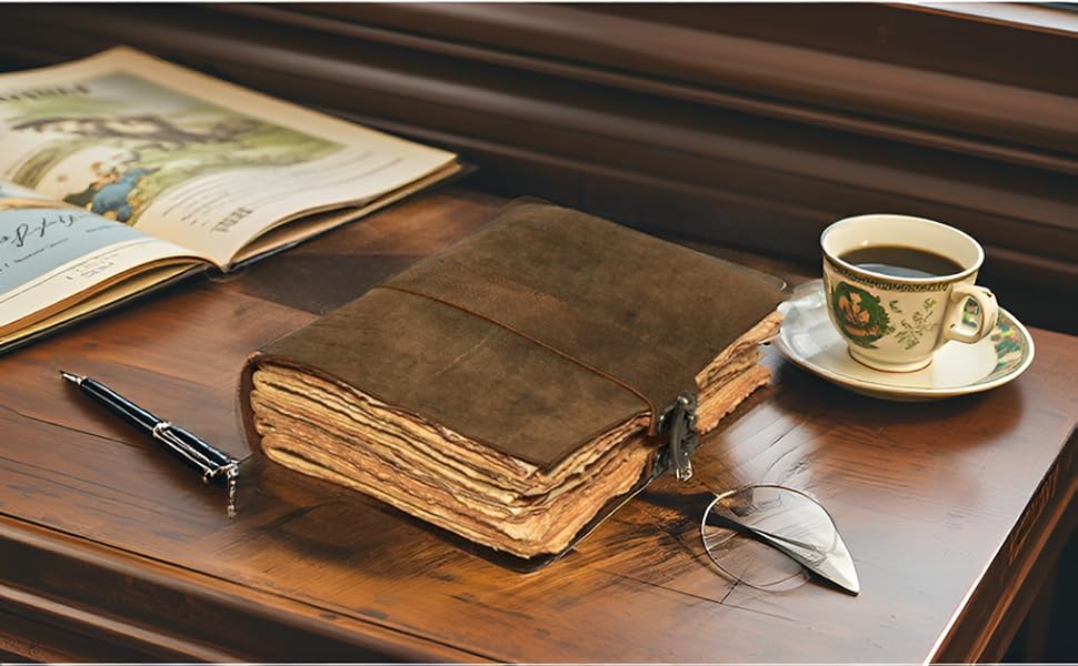 ✅ مجلة جلدية عتيقة مصنوعة يدويًا - هذه المجلة مصنوعة من جلد الجاموس الأصلي المحبب بالكامل بنسبة 100%، مدبوغ بشكل طبيعي ولم يتم الإساءة إلى الحيوانات لتصنيعه، مما يجعل كل قطعة فريدة من نوعها. يمنحها اللمسة النهائية الريفية سحر العالم القديم المثالي للكتابة أو الرسم أو كتابة اليوميات اليومية. مثالية كمجلة جلدية للرجال والنساء، فهي ناعمة ومتينة وجاهزة للسفر. الرفيق المثالي للكتاب والفنانين والمسافرين ومحبي الطراز القديم الذين يبحثون عن الجمال والوظيفة الخالدة.