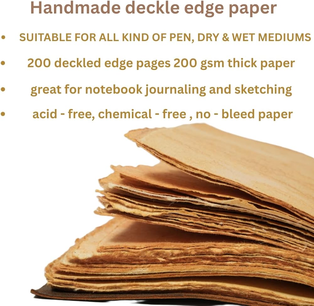 ✅ ورق حافة فريد من نوعه - 200 صفحة - يأتي مع 200 صفحة من ورق الحواف المصنوع يدويًا على الطراز العتيق والمصنوع من القطن المعاد تدويره. يعمل هذا الورق السميك الذي لا ينزف مع أقلام النافورة والألوان المائية وأقلام الفرشاة وجميع الوسائط الجافة أو الرطبة. مثالي للاستخدام كدفتر رسم جلدي، أو مجلة بألوان مائية، أو دفتر للخط، أو مذكرات يومية. توفر الصفحات الريفية تجربة فنية لمسية مثالية للكتابة أو الرسم أو تسجيل القصاصات بأسلوب عتيق حقًا.
