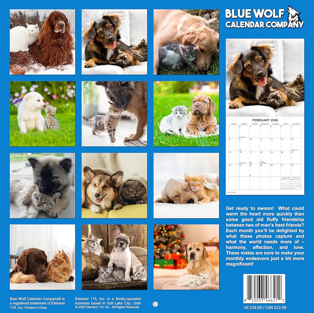 • 13 صورة ساحرة - تتضمن صورة الصفحة الأولى بالإضافة إلى 12 صورة شهرية فريدة تلتقط روح هذه الحيوانات الممتعة والمحبوبة.
