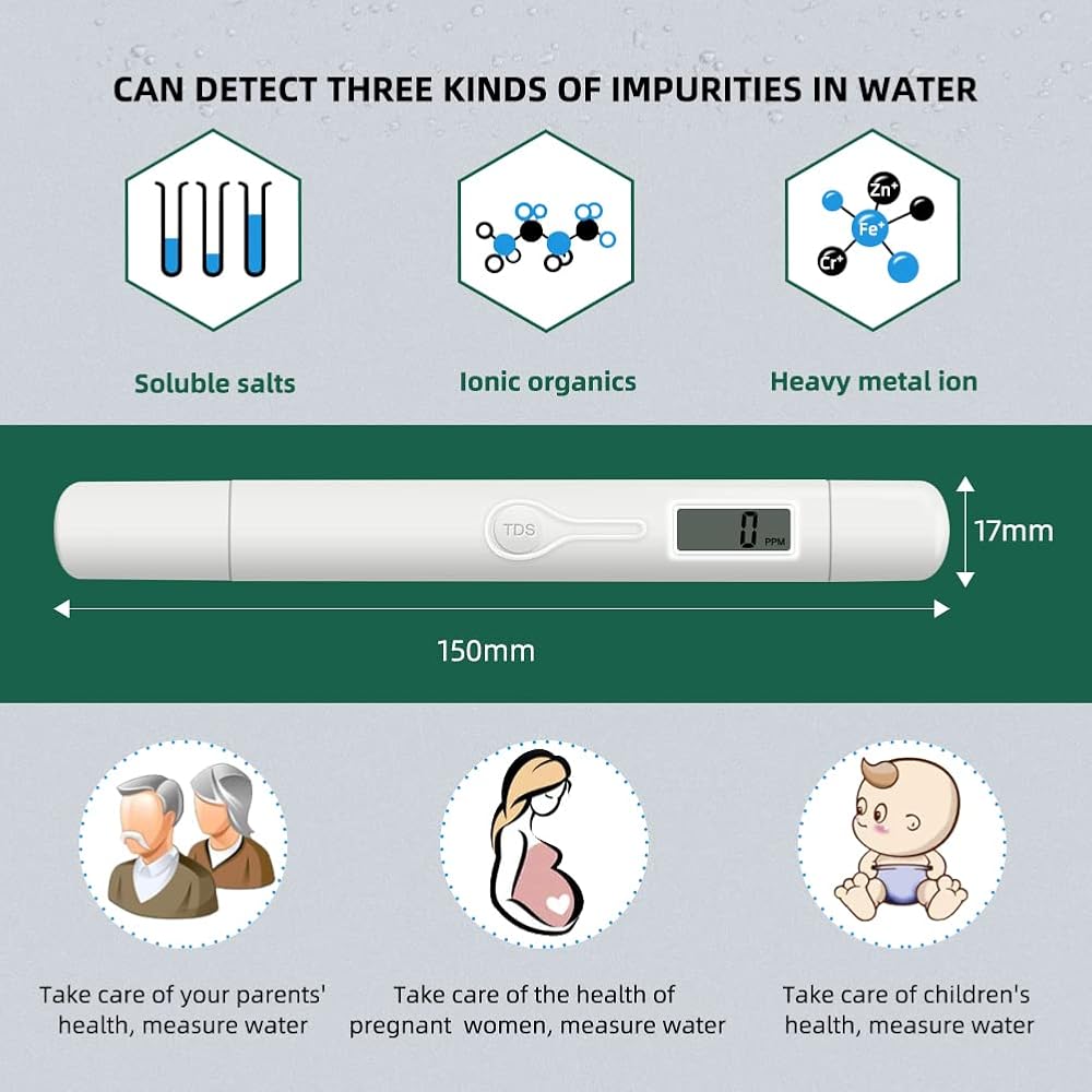 • Protect The Health of Your Family: Owning a TDS meter can test the total dissolved solids content in drinking water to avoid various health problems caused by poor water quality