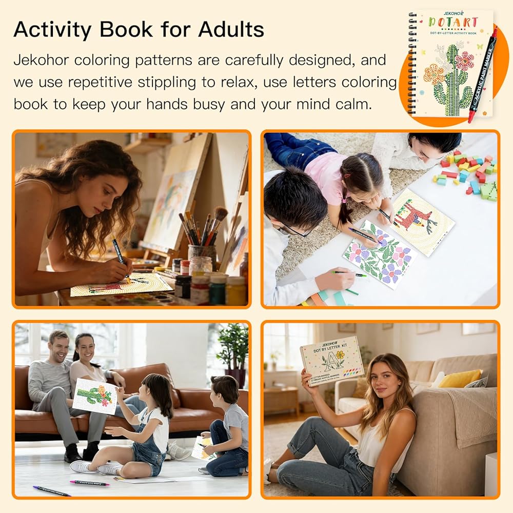 🌷استرخِ مع التلوين العلاجي نقطة بحرف: تخلص من التوتر اليومي من خلال فن النقاط، وتجمع كل صفحة بين النقاط ذات الحروف المهدئة وتحول الاتصال المنظم إلى طقوس مهدئة أثبتت فعاليتها في تقليل القلق وتعزيز التركيز، وتظهر الدراسات أن مثل هذه الأنشطة تقلل من القلق وتعزز الرفاهية الذاتية (ملاحظة: كتاب التلوين الخاص بنا لا يحتوي على أقلام تلوين).