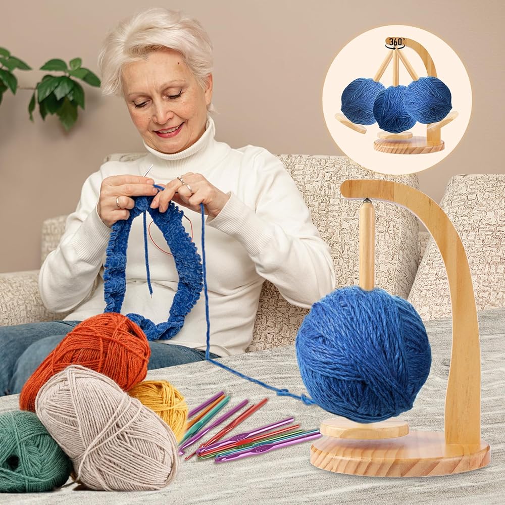 مادة جيدة: حامل الغزل الخاص بنا مصنوع من خشب الصنوبر عالي الجودة، مع ملمس طبيعي شفاف وعمر خدمة طويل دون تشقق. وبعد الصنفرة والطلاء الدقيق، لا يوجد نتوءات أو رائحة، مما يوفر تجربة حياكة أكثر راحة.