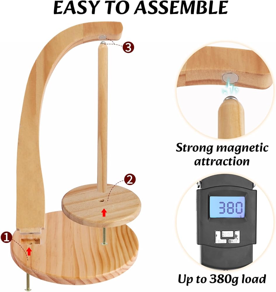 سهلة التجميع: يستغرق الأمر دقيقتين فقط لتثبيت حامل الغزل الخشبي بسهولة باستخدام المسمارين المتوفرين. أثناء الاستخدام، يمكنك بسهولة إزالة المغزل أو تعليقه، مما يسمح لك بتغيير الخيوط في أي وقت، مما يجعل عملية الحياكة أكثر كفاءة.