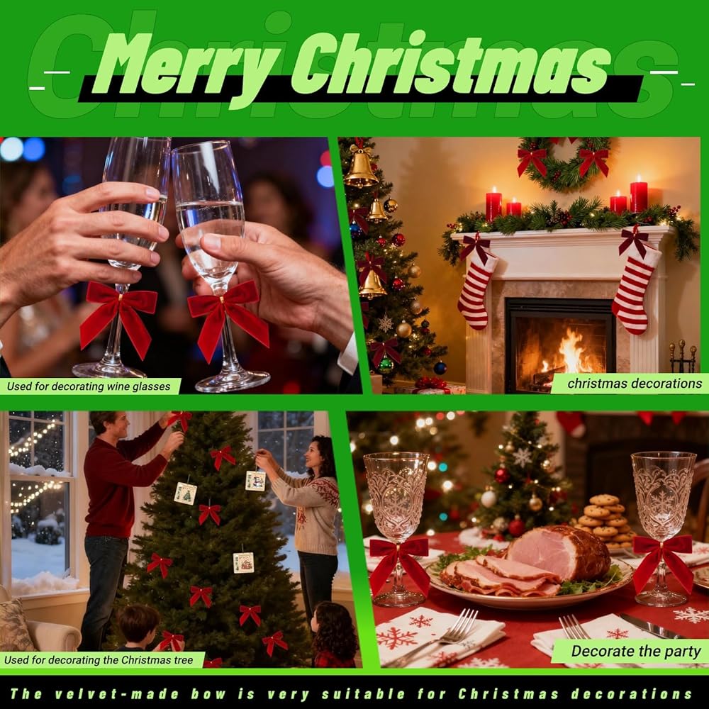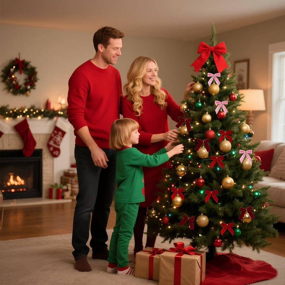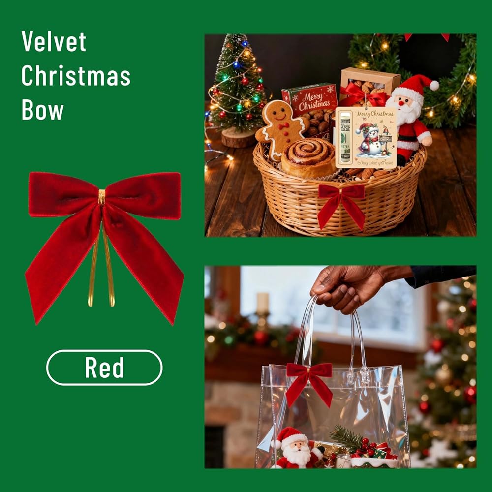 • خامة ممتازة: أقواس شجرة عيد الميلاد الحمراء الخاصة بنا مصنوعة من شريط مخملي ناعم عالي الجودة مع لمعان لطيف. خفيفة الوزن، ومتينة، ومقاومة للبهتان، وتضيف لمسة دافئة واحتفالية إلى ديكور عطلتك.