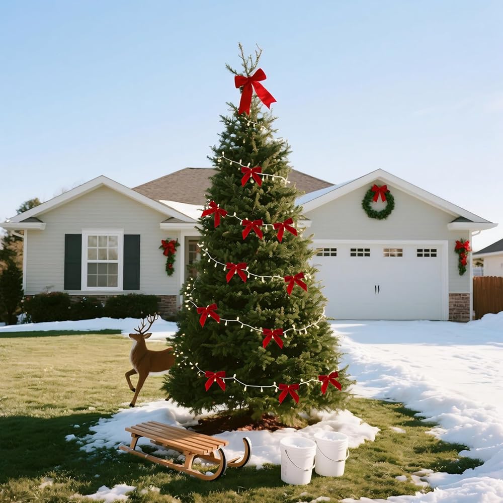 • مناسبة لجميع المناسبات: ليس فقط لعيد الميلاد! تعتبر أقواس عيد الميلاد الخاصة بنا للشجرة رائعة لأعياد الميلاد وحفلات الزفاف وحفلات استقبال الأطفال وحفلات الزفاف وعيد الحب وعيد الفصح وعيد الشكر ورأس السنة الجديدة والتخرج والمزيد، مما يضيف لمسة أنيقة واحتفالية إلى أي احتفال.