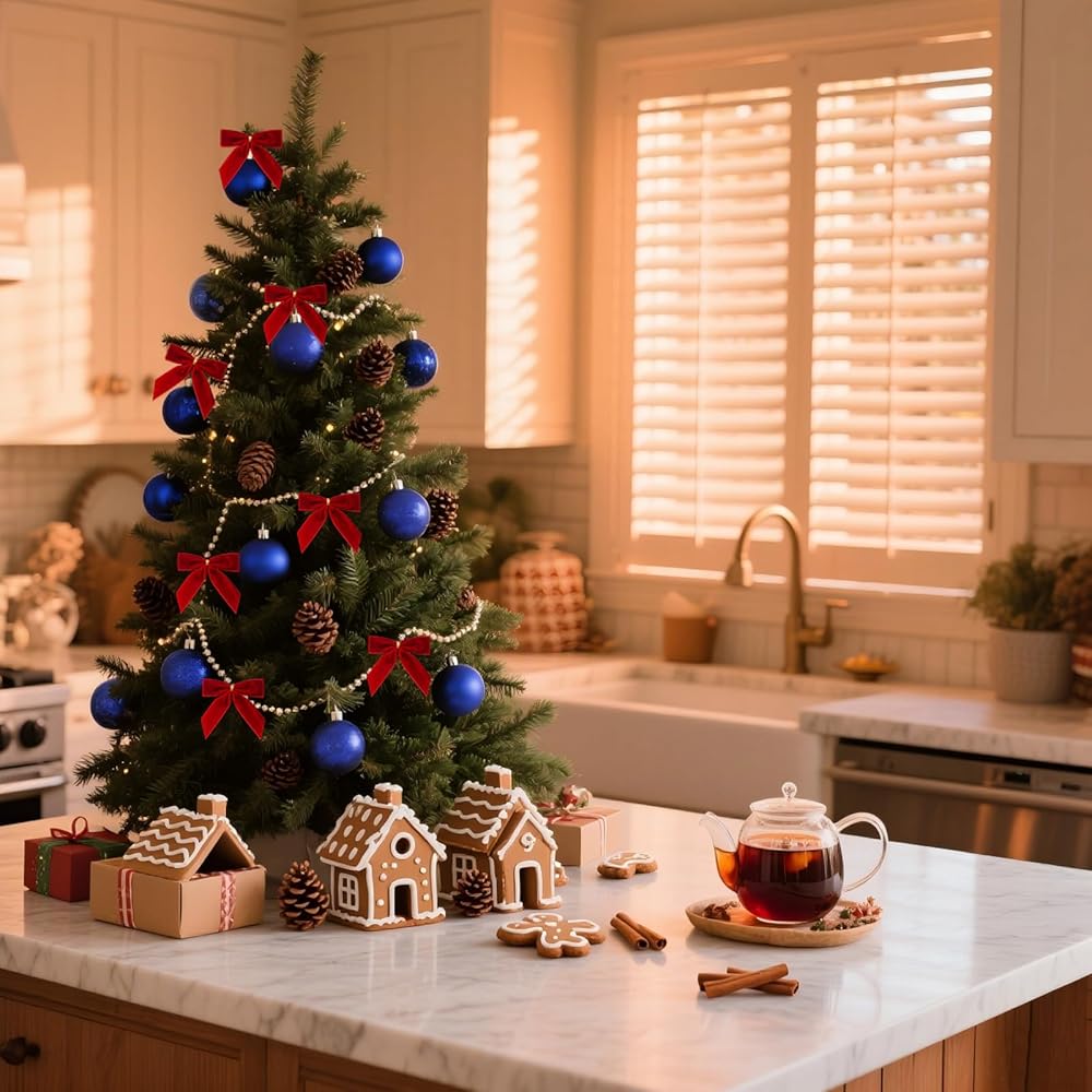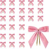 • الحجم المثالي: يبلغ مقاس كل قوس مخملي لشجرة عيد الميلاد حوالي 3.5 سم × 3.5 سم، وهو بحجم الحلوى ورقيق. مربوطة مسبقًا بأربطة ذهبية ملتوية من أجل تزيين سريع وسهل، ويمكن إعادة استخدامها سنة بعد عام.