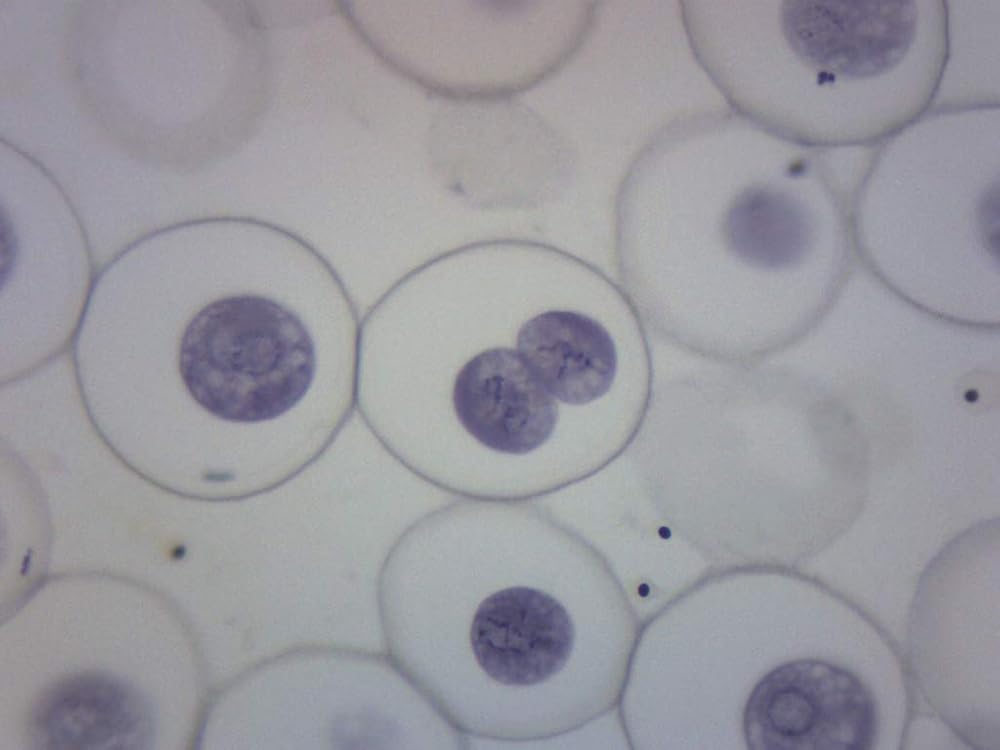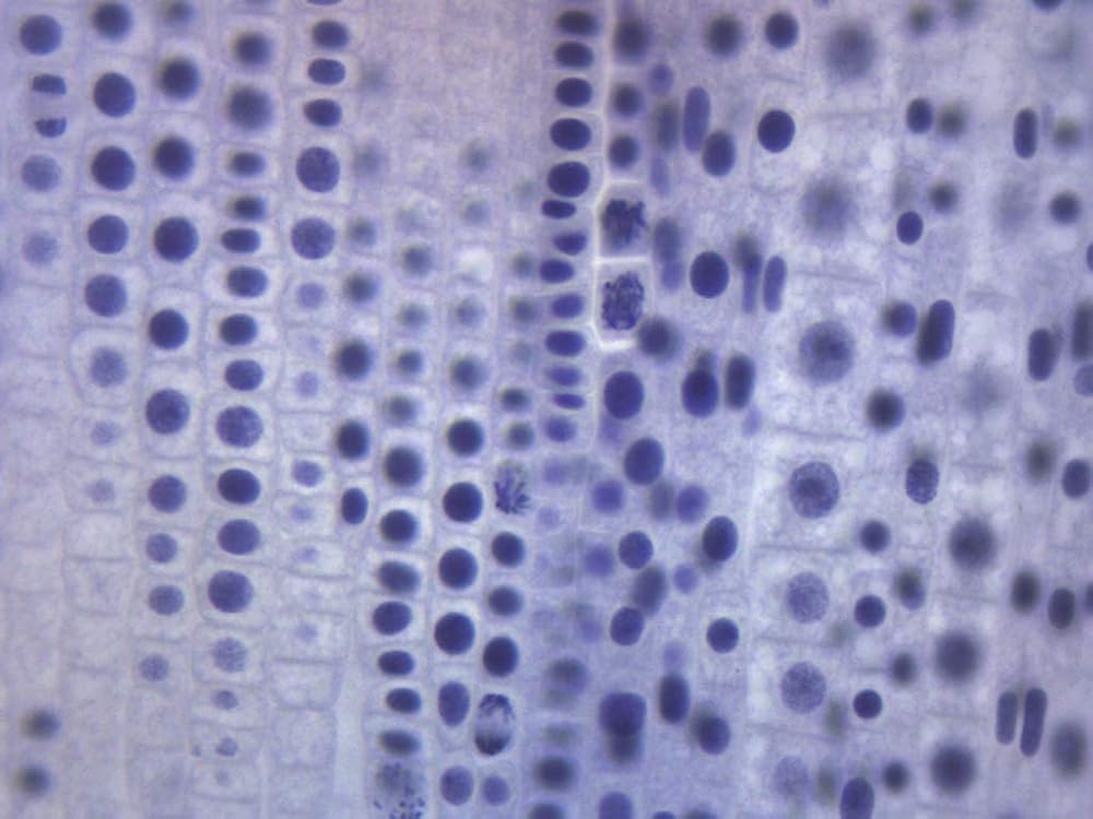 شريحة انقسامية مفردة ومجهزة في نباتات الإسكارس والبصل (الآليوم).