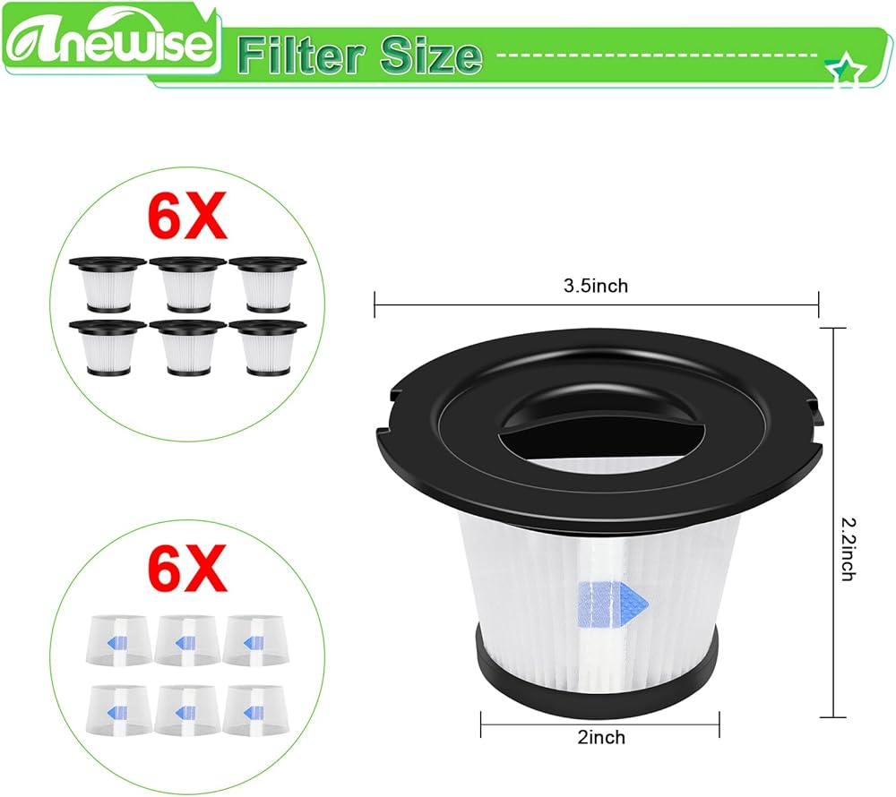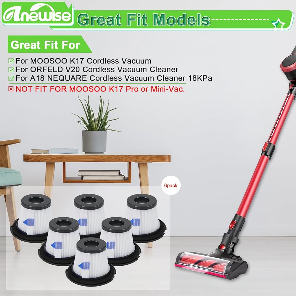 اينوايز 6 عبوات فلاتر هيبا للمكنسة الكهربائية اللاسلكية اورفيلد V20، متوافقة مع مكنسة موسو K17 اللاسلكية ومكنسة كهربائية لاسلكية A18 نيكوار، 18 كيلو باسكال، ليست لموسو كيه 17 برو او ميني فاك