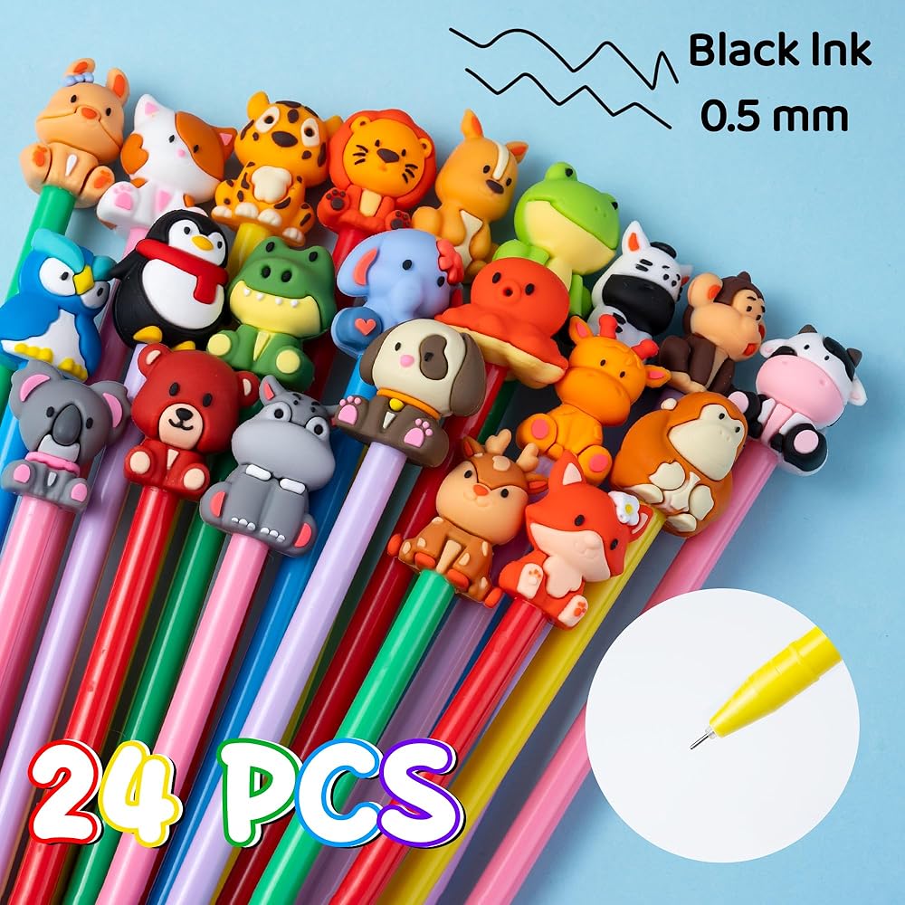 لطيف سفاري الحيوانات الكرتون هلام أقلام الحبر الأسود، أقلام الكتابة kawaii عشوائية، أنماط متنوعة أقلام للمدرسة مكتب المنزل طالب الأطفال الحاضر (24)