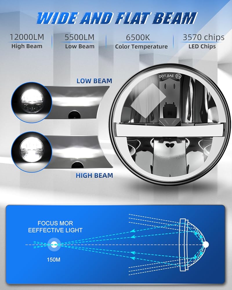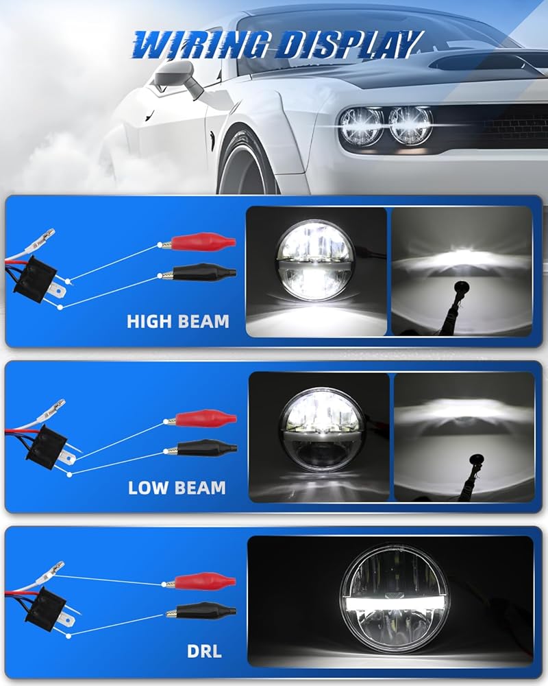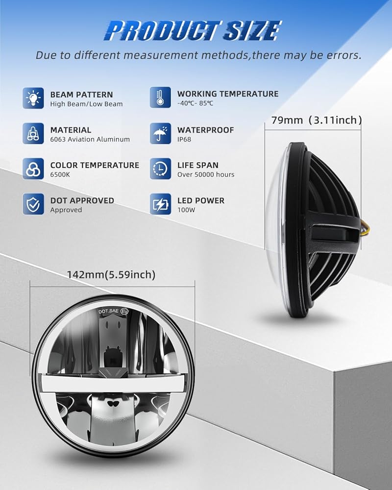 【أداء إضاءة ممتاز】يتميز المصباح الأمامي LED مقاس 5.75 بوصة من Jumpdy برقائق LED عالية الطاقة للحصول على سطوع استثنائي. يصل سطوع الشعاع العالي إلى 6000LM، مما يخترق سماء الليل للحصول على رؤية واضحة للطرق السريعة. تتميز الشعاع المنخفض بمخرج 3000LM واسع النطاق، موزع بالتساوي مع خط قطع حاد، مما يضمن سلامة القيادة الخاصة بك مع تقليل تشتيت انتباه المركبات القادمة. تضيف الهالة الكاملة للعيون الملائكية لمسة من التكنولوجيا إلى سيارتك.
