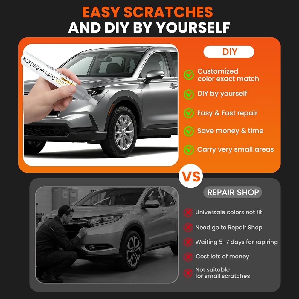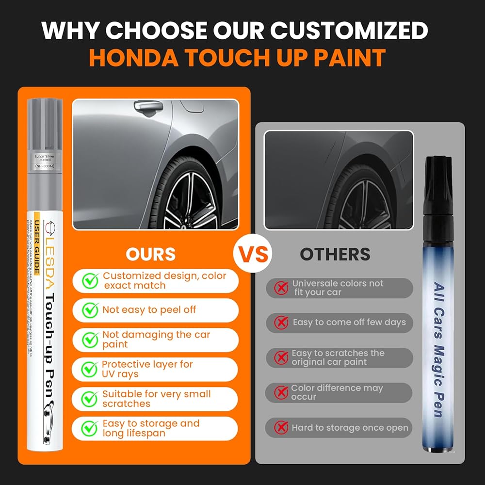 • 【Compact & Easy to Use】Our touch-up paint for car with portable and pocket-sized fits easily in glove boxes/backpacks. Quickly repair parking scrapes, road chips, or key marks fast—prevent damage from dirt/moisture, and keep your Honda in new