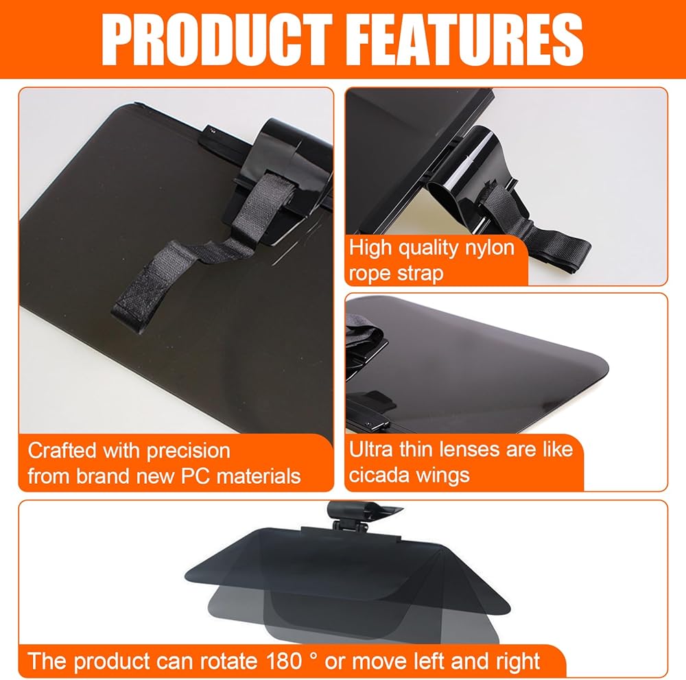 • 【Enhanced Driving Safety】:This 180° adjustable car visor extender sun blocker can effectively block ultraviolet rays, isolate sunlight glare, building and rear reflected light, and minimize your eye fatigue to the greatest extent possible. Moreover, the lens on the sunshade is high-definition and ultra-transparent, with high visibility, so that it will not obstruct your line of sight, ensuring a clear driving vision and providing you with a comfortable and safe driving environment. You can adjust the angle of the lenses or the position of the original sun visor by moving back and forth to achieve a better shading effect.