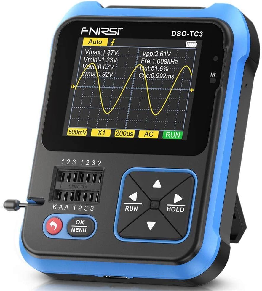 This hand-held digital oscilloscope can be used to measure the shape of alternating current or pulse current wave, and convert invisible electrical signals into visible images, which is convenient for studying the changing process of various electrical phenomena. All periodic physical processes that can become electrical effects can be observed with an oscilloscope, which is highly practical and widely used in DIY learning, on-site debugging, home appliance maintenance, power measurement and other fields.