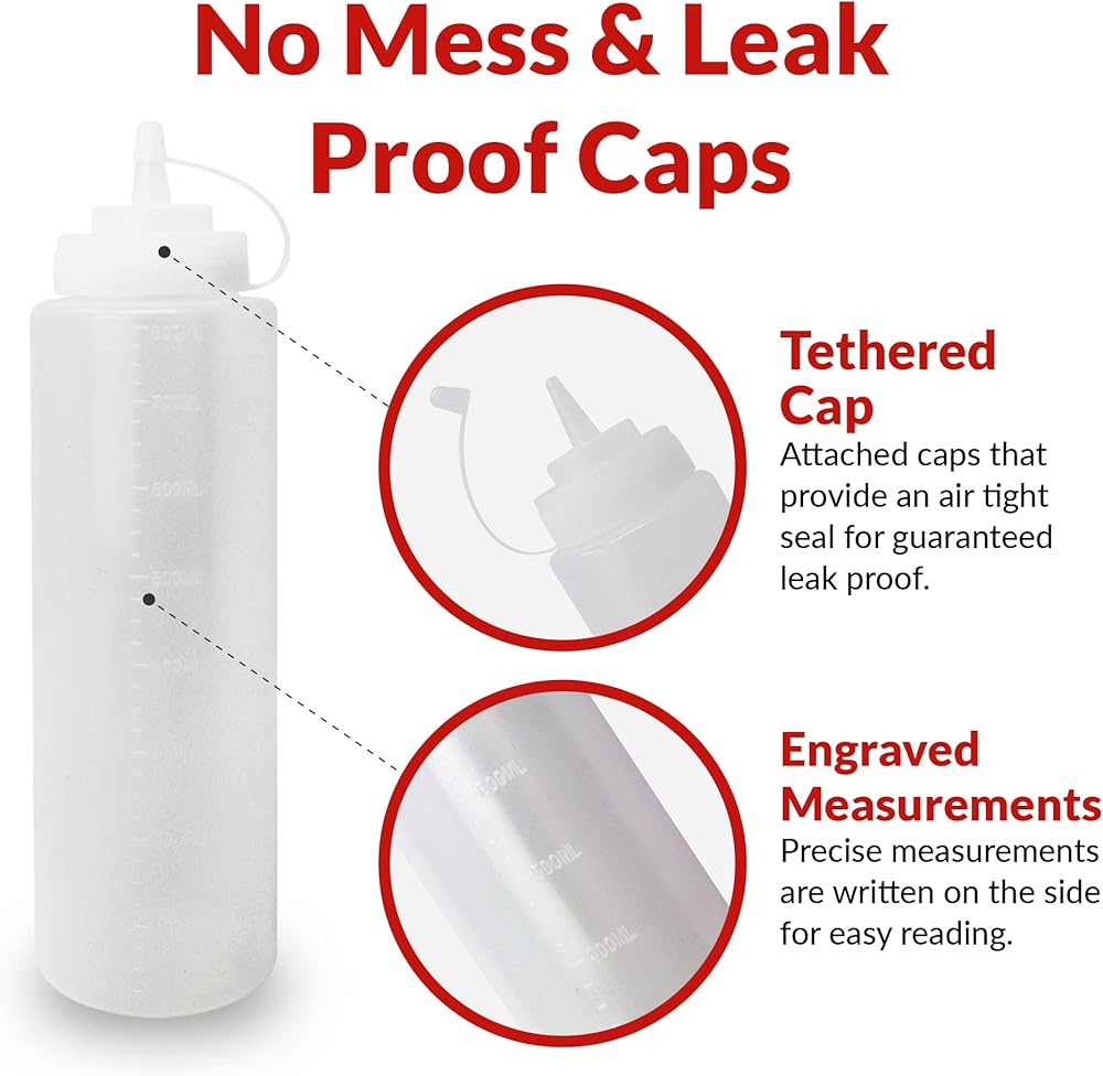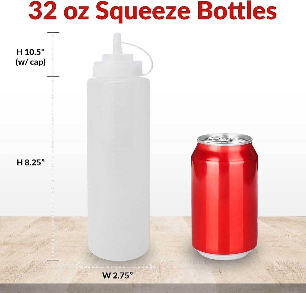 - زجاجات بلاستيكية قابلة للضغط بسعة 32 اونصة | عبوة من 8 قطع | زجاجة شفافة مع أغطية مربوطة | خالية من البيسفينول ايه