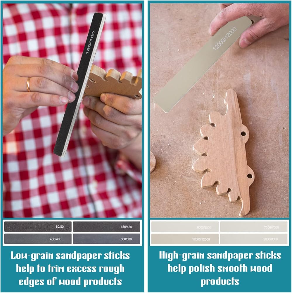 مواد عالية الجودة: عصي الصنفرة الصغيرة هذه مصنوعة من ورق الصنفرة، متينة وآمنة، ليس من السهل كسرها، مصممة على الوجهين يمكنها الوصول إلى المساحات الضيقة، وتلميع السطح الذي تحتاجه بسهولة، مما يسمح لك بالتطبيق لفترة طويلة
