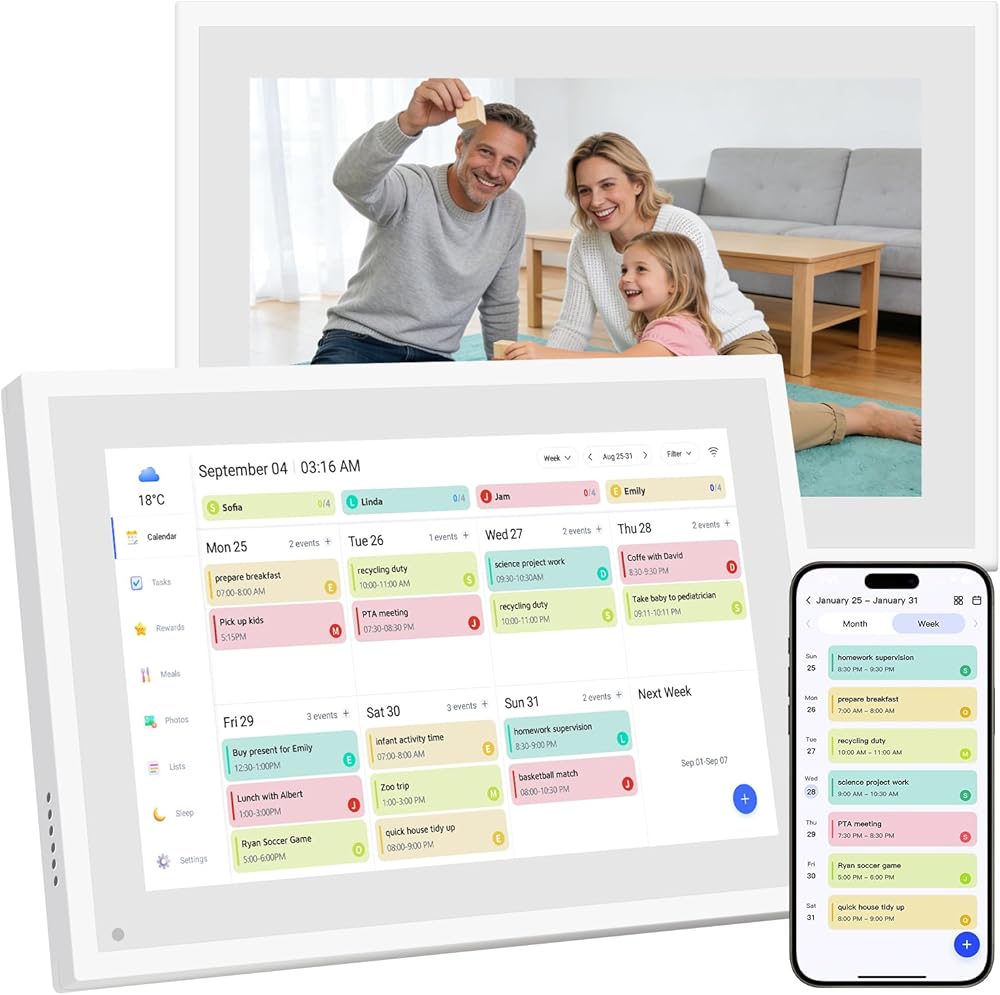 تفاعل الوسائط المتعددة: يعمل التقويم الإلكتروني كإطار صور رقمي عالي الدقة. قم بالتبديل إلى وضع إطار الصورة لمشاركة الصور ومقاطع الفيديو، ويدعم عروض الشرائح التلقائية وإدارة الألبومات المصنفة، مما يتيح لك مشاركة اللحظات الثمينة مع العائلة في أي وقت وفي أي مكان.