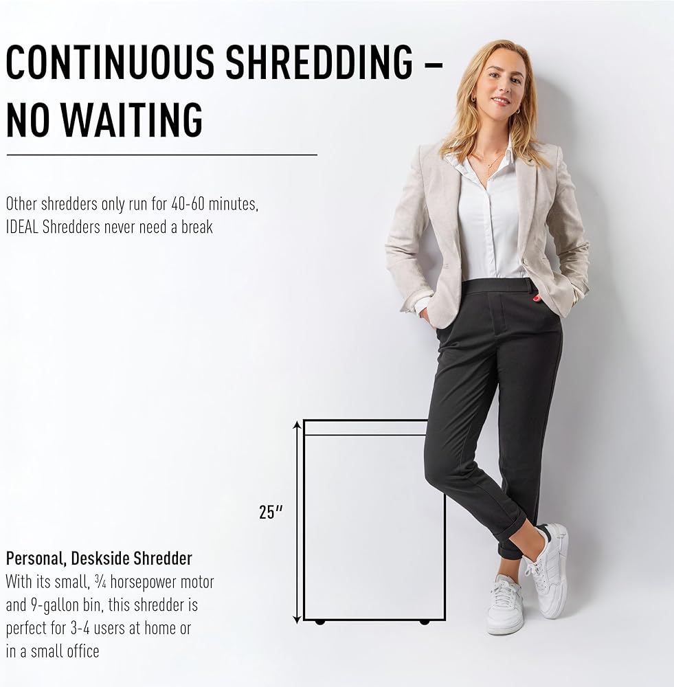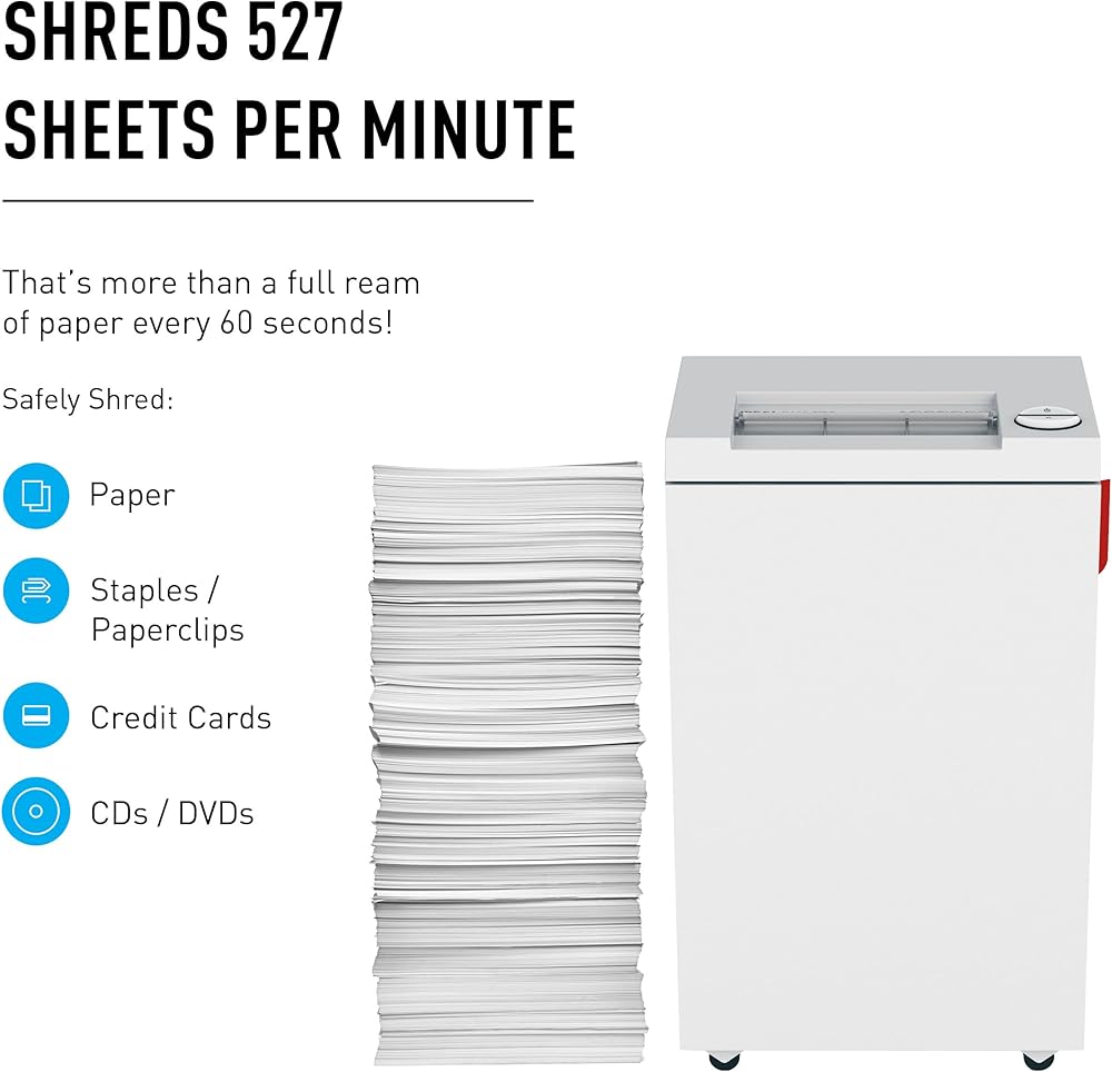 The ideal. 2465 cross-cut p-5 is a convenient and powerful desk side shredder, designed for 2–3 users. hipaa and facta compliant, and certified to shred personal identifiable information (pii) and controlled unclassified information (cui), the 24650 is federally accepted to protect information and social security numbers against identity theft. continuous operation and high-quality, solid steel cutting heads minimize downtime while shredding paper. a 9 1/2" feed opening and impact-resistant, lightweight, easy-to-remove 9-gallon bin make this a perfect desk side, high-security shredder. a patented, transparent safety shield in the feed opening protects fingers and hands. a 3/4 horsepower motor chews through 9 to 11 sheets of paper at once and up to 343 sheets of paper per minute. German engineering and manufacturing ensure superior quality that will provide many years of trouble-free operation.