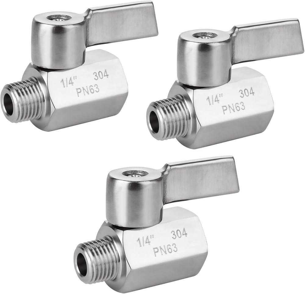 صمام كروي صغير من الفولاذ المقاوم للصدأ مقاس 1/4 بوصة من ABuff، خيط NPT أنثى × ذكر NPT، صمام إغلاق (عبوة من 3)