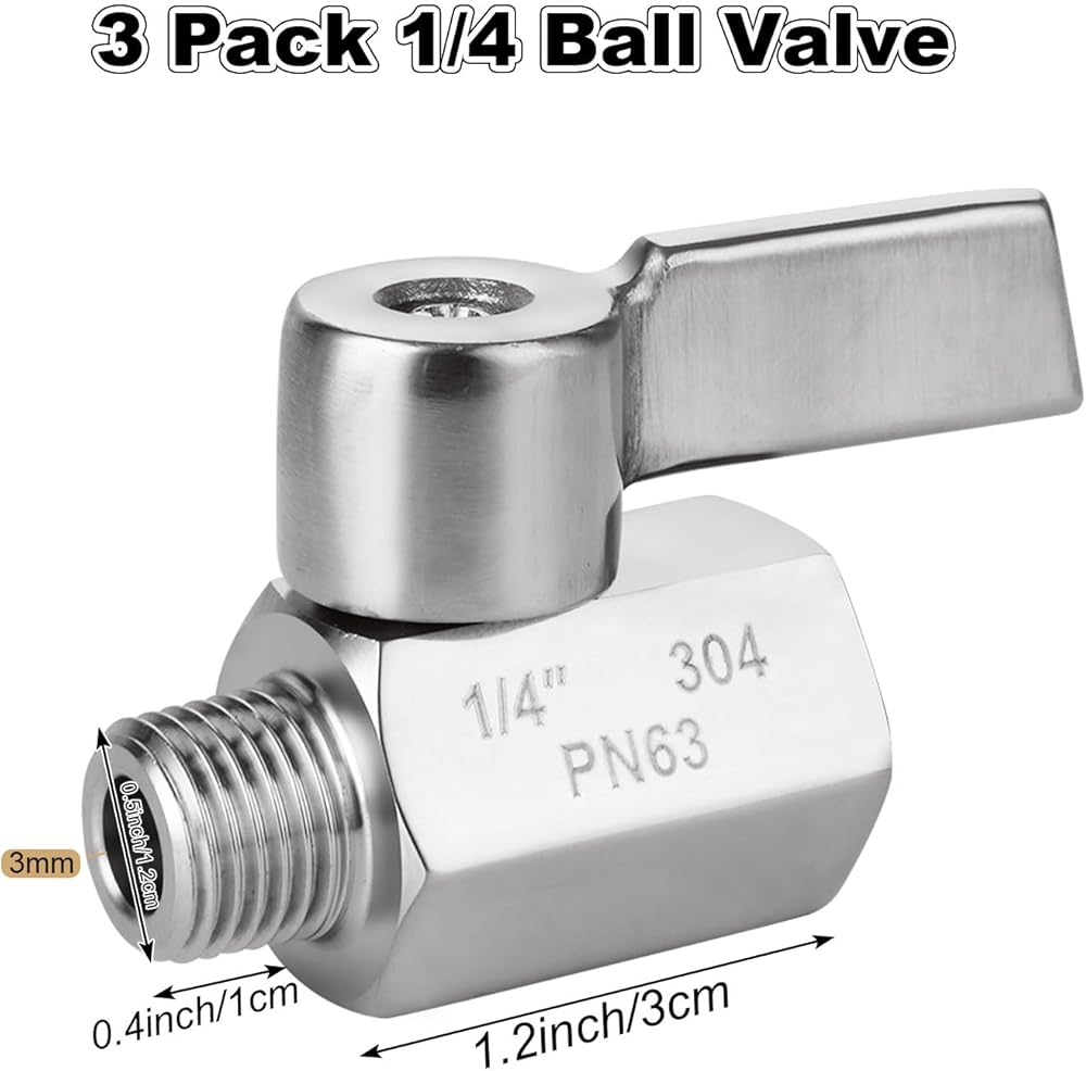 PACKAGE CONTENT -- You will received 3 pack 1/4" ball valve, connect to male threaded pipe fittings with ease using the 1/4 Inch NPT Female & Male threads of our Ball Valve.