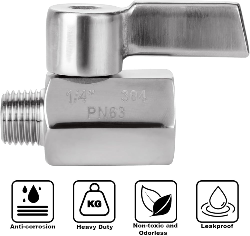 STURDY & DURABLE -- The ball valves made of high quality stainless steel, working temperature can be from -300°F to 392°F, SUS304 body and ball provide extra strength and corrosion resistance to ensure a long-lasting and durable valve.