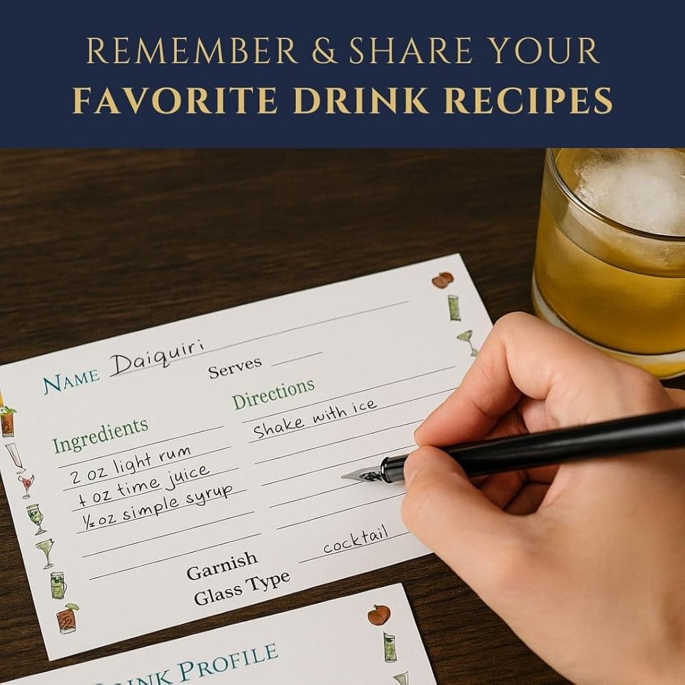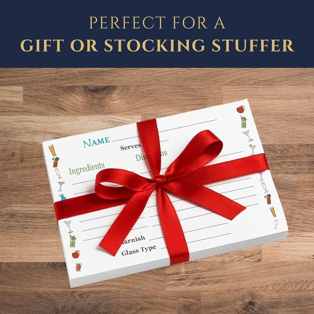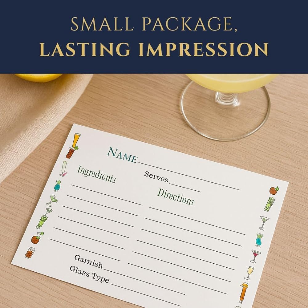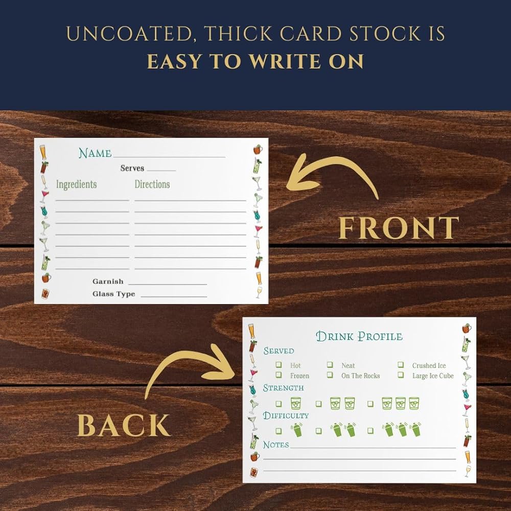 بطاقات وصفات فاخرة 4×6 - البطاقات ذات الحجم الكبير تجعل من السهل تسجيل وصفات الكوكتيل الكاملة وتتناسب تمامًا مع صناديق الوصفات القياسية والمنظمات والأكمام.