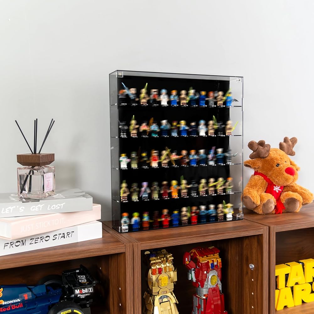 Holds 60 Minifigures Securely - Perfectly sized to display 60 building block minifigures. Features a black Acrylic background and is fully compatible with famous brand minifigures like for Lego, making your Mini Brands and collectibles stand out.
