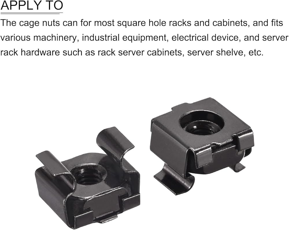 [1]: تنطبق على - يمكن أن تناسب صواميل القفص معظم رفوف وخزائن الفتحات المربعة، وتناسب مختلف الآلات والمعدات الصناعية والأجهزة الكهربائية وأجهزة رف الخادم مثل خزائن خادم الرف ورف الخادم وما إلى ذلك.