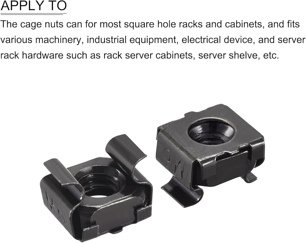 [1]: تنطبق على - يمكن أن تناسب صواميل القفص معظم رفوف وخزائن الفتحات المربعة، وتناسب مختلف الآلات والمعدات الصناعية والأجهزة الكهربائية وأجهزة رف الخادم مثل خزائن خادم الرف ورف الخادم وما إلى ذلك.