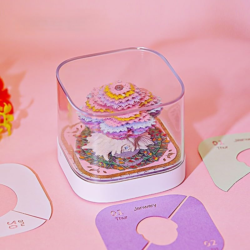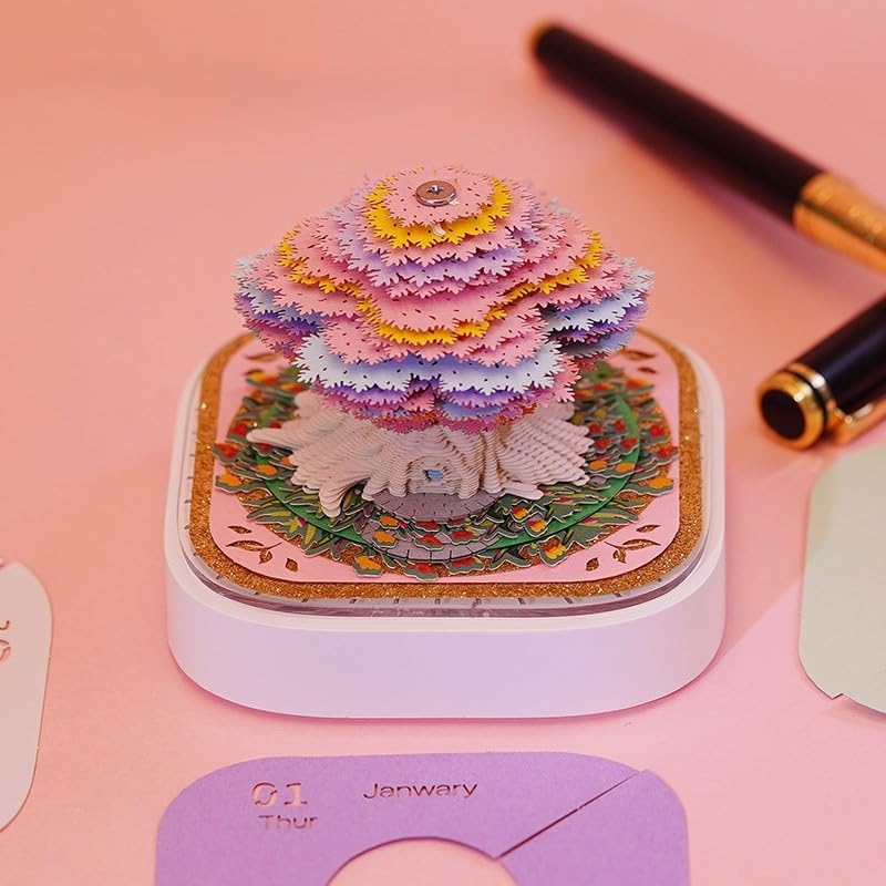 【صناعة متقنة】تقويم فني ثلاثي الأبعاد باستخدام ورق خاص عالي الجودة وحرفية نحت الورق، مكمل بورق زخرفي متعدد الألوان وأشكال رائعة، يضيف سحرًا فريدًا إلى تقويم المكتب بأكمله، والذي يمكن أن يجذب انتباه أي شخص. تحتوي على غلاف واقٍ من الأكريليك، وهو مقاوم للغبار، كما أنه قاعدة عملية.