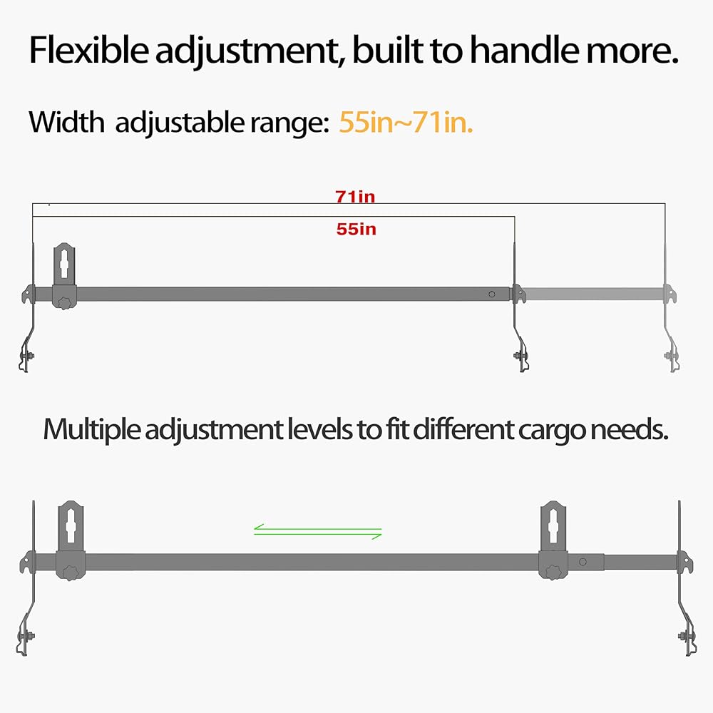 • ✅ Ideal for Work & Adventure – Perfect for contractors, electricians, plumbers, and outdoor explorers. Securely carries ladders, lumber, kayaks, tools, and gear while maintaining van stability and clearance.