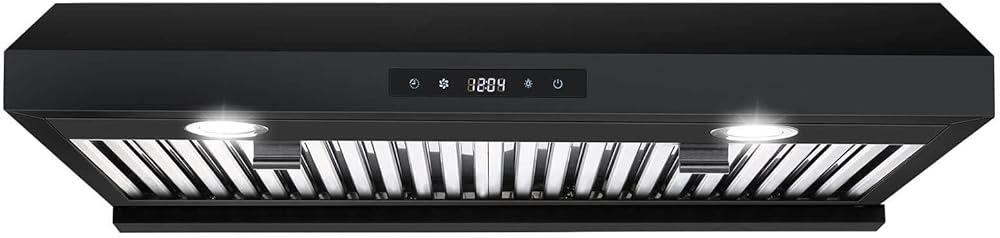 SNDOAS Range Hood 30 بوصة تحت الخزانة، غطاء المطبخ الأسود مع 600 CFM، الفولاذ المقاوم للصدأ فوق أغطية تنفيس الموقد، غطاء مطبخ مجاري مع لوحة تحكم تعمل باللمس، 3 مروحة عادم تنفيس السرعة، محركات مزدوجة