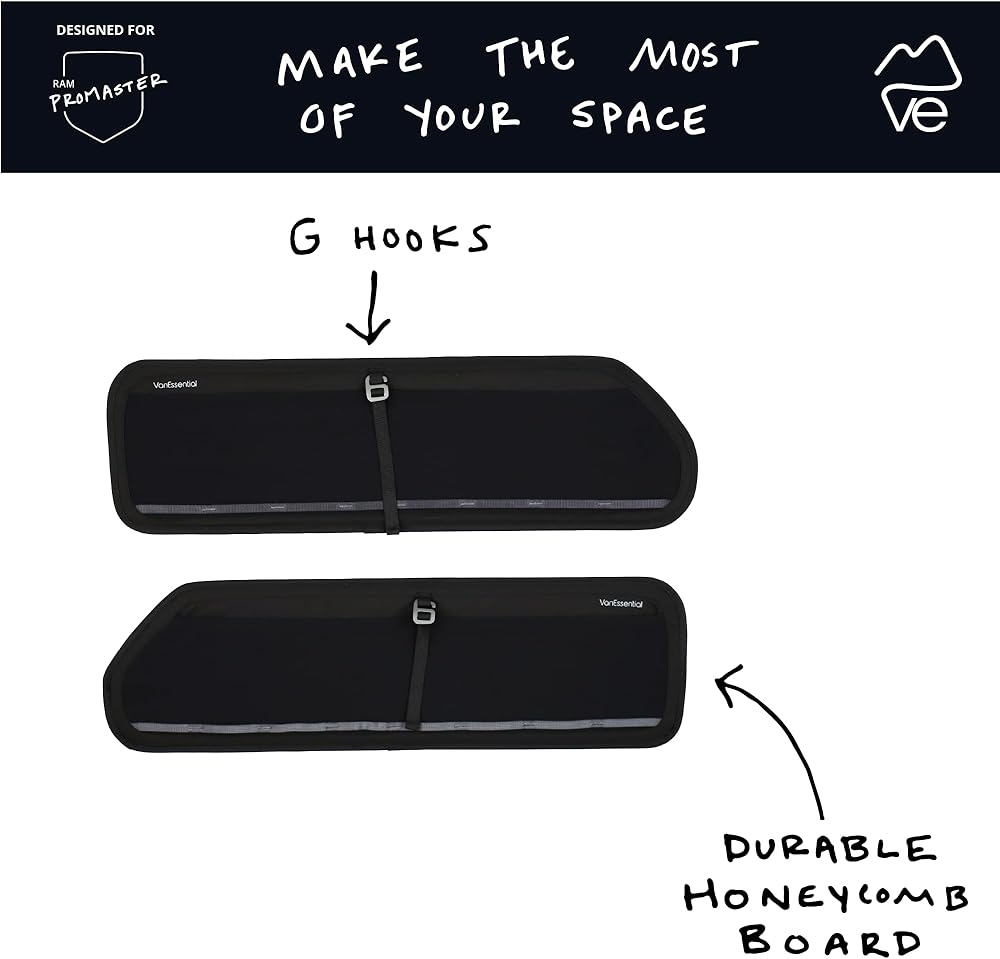 [التصميم] مصنوعة من لوح صلب على شكل قرص العسل ومصنوعة من مواد معاد تدويرها، وقد تم تصميم هذه الألواح خصيصًا لتناسب الدقة في الباب الخلفي في موديلات فان رام بروماستر التي تم تصنيعها من عام 2014 إلى الوقت الحالي.