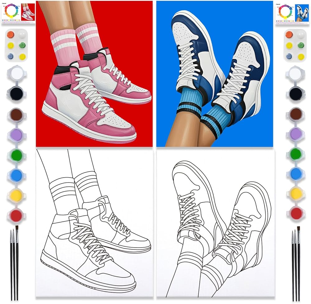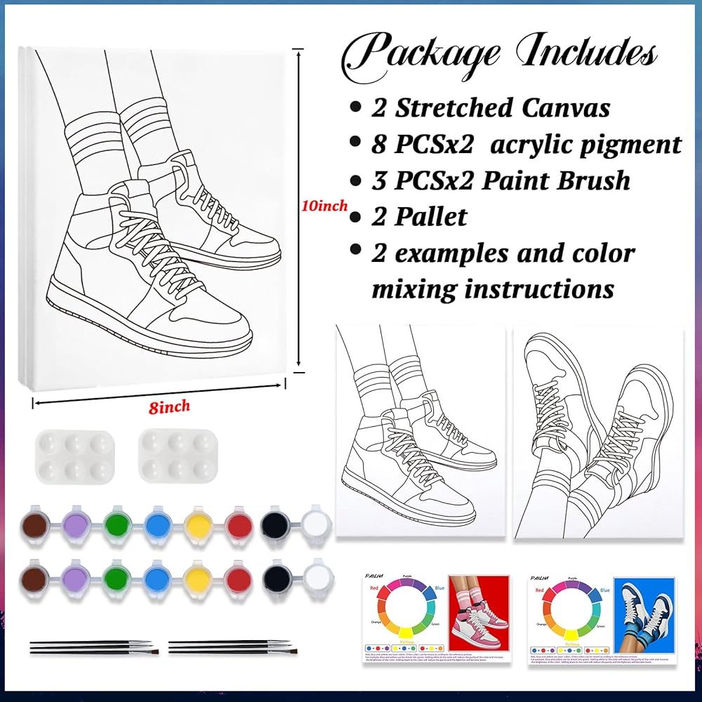 pailim 2 حزمة رشفة والطلاء عدة للبالغين الأزواج طقم الطلاء قماش مرسومة مسبقا للطلاء في المنزل تاريخ ليلة الطرف صالح اللوازم الفن اللوحة مجموعة الأحذية الأزواج النشاط 8x10