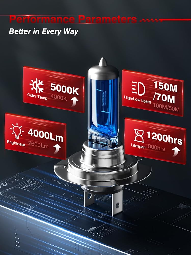 [أكثر سطوعًا وأقوى مع هيكل كوارتز] مصنوعة من زجاج كوارتز عالي النقاء وخيوط دقيقة، توفر مصابيح الهالوجين الأمامية H7 سطوعًا أكبر بنسبة تصل إلى 50% من مصابيح المصابيح الأمامية القياسية. استمتع بشعاع أكثر وضوحًا وأبعد مدى يعمل على تحسين الرؤية الليلية وسلامة القيادة بشكل عام