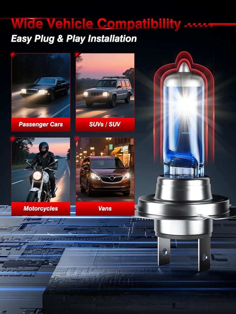 [توافق واسع لمعظم المركبات] مصمم ليناسب معظم المركبات التي تستخدم أنواع المصابيح الأمامية H7. تعتبر مصابيح H7 هذه مثالية لمبات المصابيح الأمامية ذات الشعاع المنخفض أو الشعاع العالي أو أوضاع مصابيح الضباب. ما عليك سوى مطابقة طراز لمبة الهالوجين الأمامية H7 الخاصة بسيارتك لضمان الملاءمة الصحيحة وسهولة التركيب