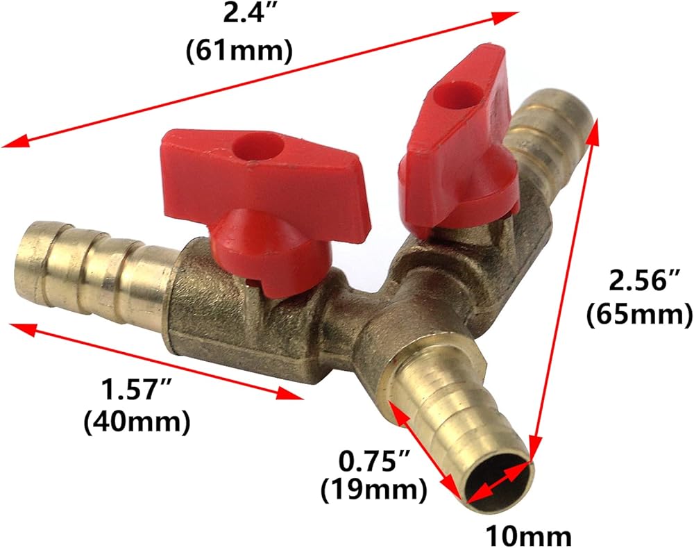 انتريدر مفتاح اغلاق بصمام كروي من النحاس المطروق على شكل حرف Y، 3/8 انش × 3/8 انش × 3/8 انش، وصلة تركيب انابيب بارب تي مع مفتاحي تشغيل
