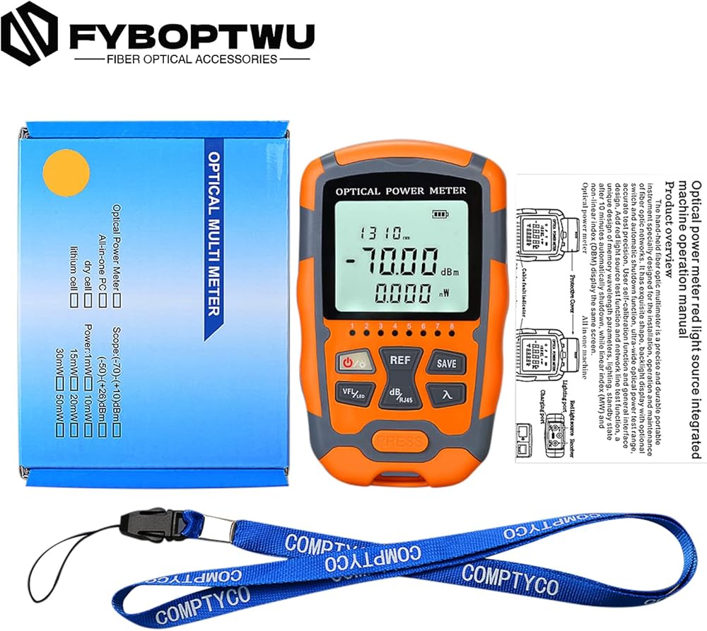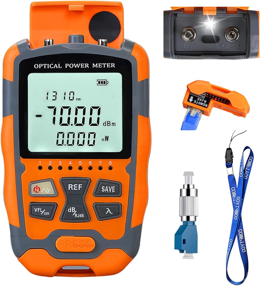 【وظيفة 4 في 1】مقياس طاقة بصري ومحدد خطأ بصري 30 ميجاوات واختبار شبكة RJ45 وإضاءة LED. يحتاج إلى بطاريتين AAA. (ملاحظة: البطاريات غير متضمنة في العبوة)