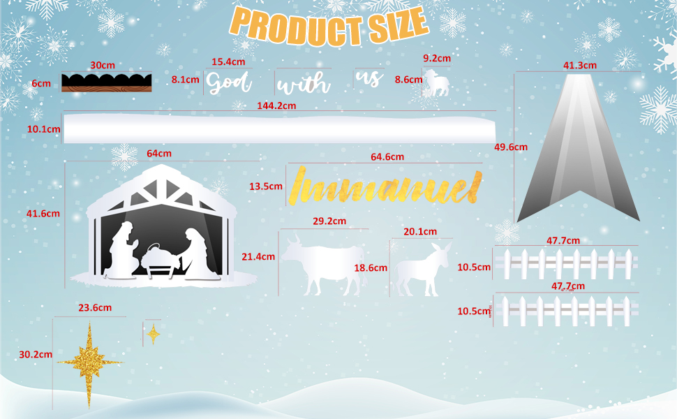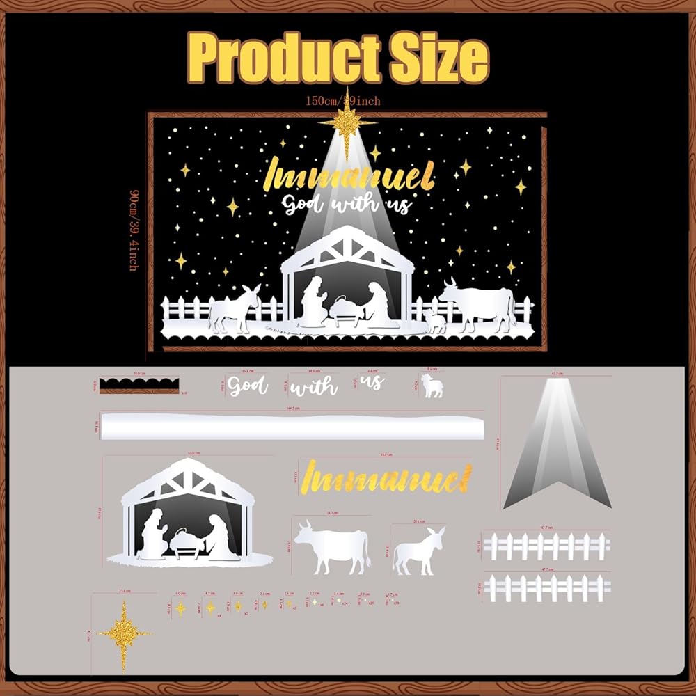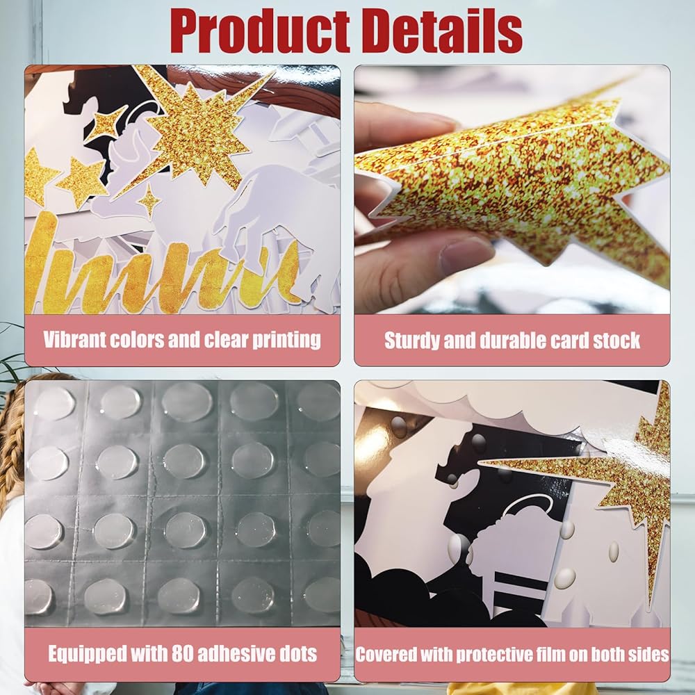 مواد عالية الجودة: لوحة إعلانات ميلاد المسيح الدينية الخاصة بنا مصنوعة من بطاقة عالية الجودة، وهي متينة وقابلة لإعادة الاستخدام، وغير سامة ولا توجد رائحة غريبة، وتأتي مع أنماط طباعة جيدة، وتبدو مشرقة وحيوية للغاية، وسهلة جذب الأنظار.