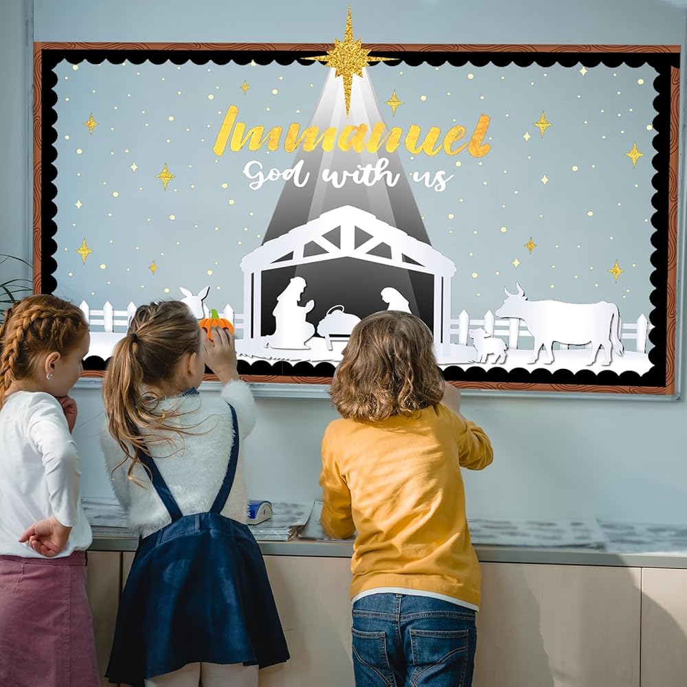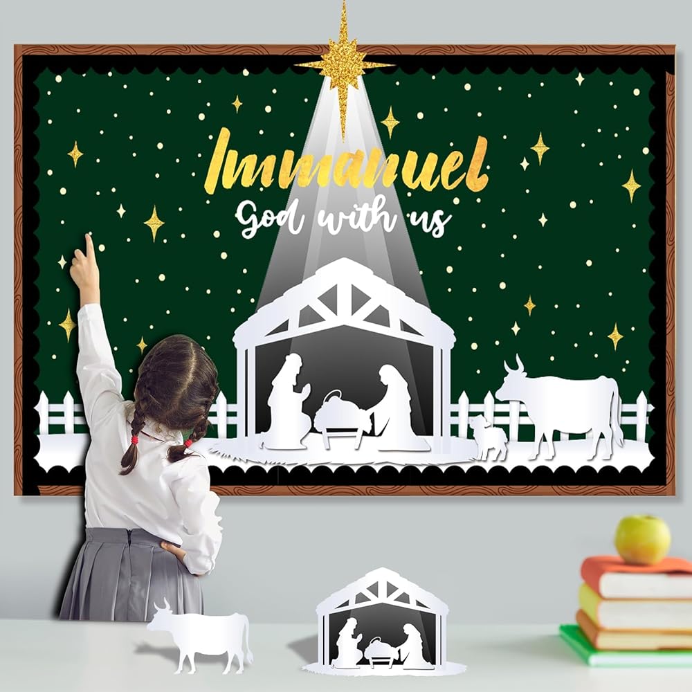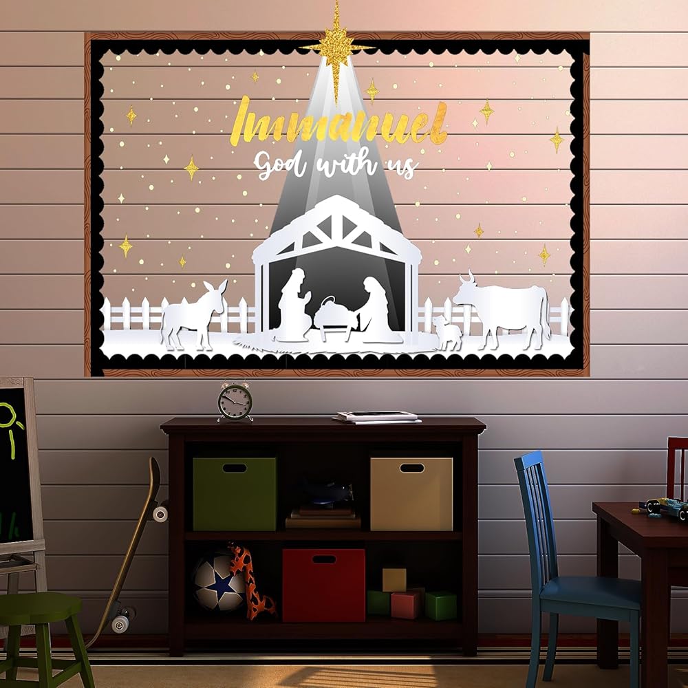 عيد الميلاد المهد نشرة مجلس الزينة مجموعة مع الحدود الدينية يسوع الميلاد ديكور الفصول الدراسية للمعلمين مشهد المهد القواطع للفصل المدرسة الفصول الدراسية لوحة الإعلانات الديكور