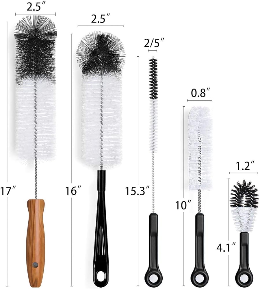 مجموعة فرش تنظيف زجاجات المياه الفاخرة لدينا تعمل بشكل رائع مع مجموعة متنوعة من الزجاجات التي تتراوح بين زجاجات الهيدروفلاسك ونالجين وييتي وبي كيه ار وكلين كانتين وزجاجات الخلاط وأكواب الخلط والمزيد! مع وجود 5 أحجام مختلفة من الحصول على بقايا مسحوق البروتين المزعجة أصبح ممكناً أخيراً. الفرش الخاصة بنا رائعة دائمًا للاستخدام في الخمر في المنزل! قم بتنظيف زجاجات النبيذ والمرافق وتخمير البيرة والمزارعين والقوارير والقوارير والقوارير والقوارير وحاويات كومبوكا وزجاجات البيرة والمزيد!