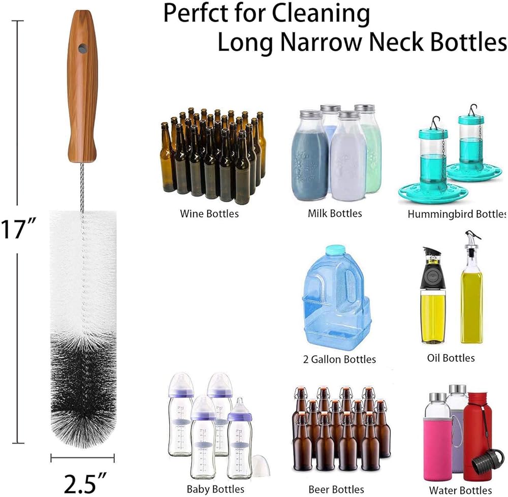 فرشاة تنظيف طويلة للغاية 43.18 سم مع شعيرات بعرض إضافي 6.35 سم يمكن أن تصل بسهولة إلى الأسفل وتنظف جميع المناطق الداخلية، مثالية لزجاجات النبيذ الطويلة الضيقة / زجاجات البيرة ، اس ويل ، كومبوكا، قارورة الماء ومغذية الطيور الطنانة.
