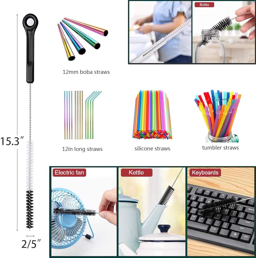 فرشاة ماصة بطول إضافي 15.3 انش يمكنها تنظيف الماصات القابلة لإعادة الاستخدام بطول 14 انش من الأعلى إلى النهاية بالكامل. فرشاة أنبوب 10 بوصة تعمل بشكل جيد لفوهة إبريق الشاي وزجاجة الطفل وأنبوب الاختبار. فرشاة التفاصيل، سهلة الوصول إلى شقوق الأغطية والأغطية.