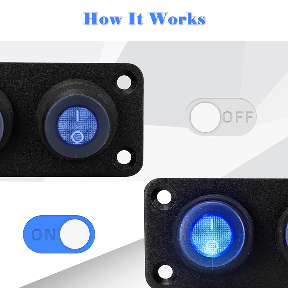 تتيح لوحة المفاتيح إمكانية التشغيل/الإيقاف مجانًا. جهد التشغيل: 12 فولت تيار مستمر؛ التصنيف الحالي: 20A؛ تتميز بهيكل أحادي القطب (SPST) يدعم التشغيل ثنائي الموضع "ON-OFF"؛ لون مؤشر LED: أزرق.
