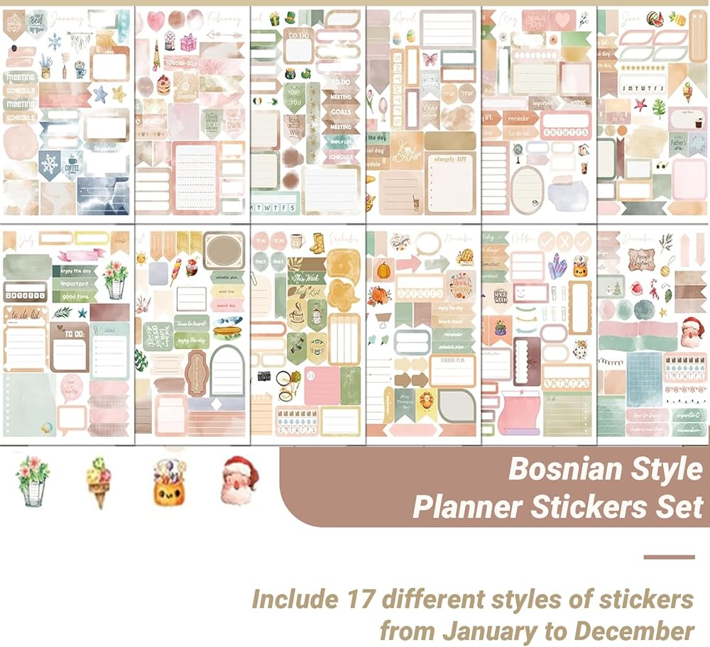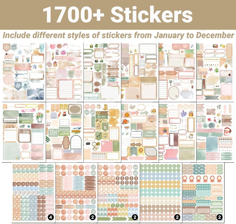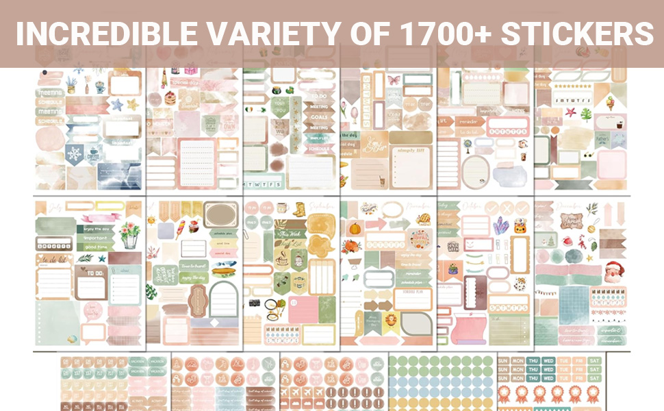 【مجموعة قيمة رائعة】24 ورقة تحتوي على أكثر من 1700 ملصق مخطط لطيف على الطراز العتيق للتقويمات والمخططين - مجموعة ملحقات التقويم الأفضل قيمة لدينا حتى الآن! عبوة واحدة تدوم لمدة عام كامل، مثالية كملصقات مخططة يومية، وملصقات مخططة أسبوعية، وملصقات شهرية للمنظمين.
